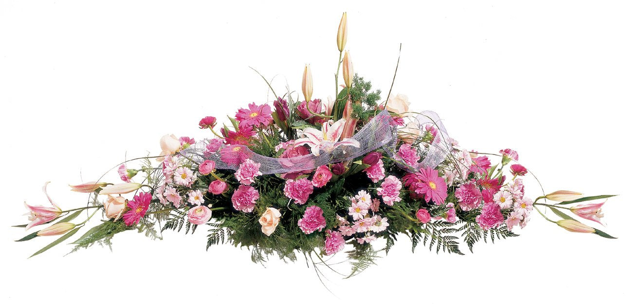 It evokes feelings of peace, tenderness, and comfort. Pink tones can be associated with love and affection, so this floral arrangement reflects an expression of affection for the deceased, a delicate and respectful affection. The combination of flowers symbolizes purity and serenity, and offers a message of tranquility and hope to loved ones during this difficult time.