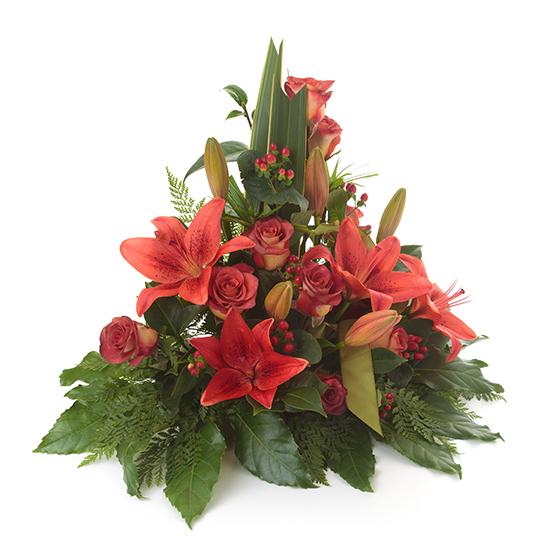 It is a small funeral composition, built on a base measuring 30x30cm and approximately 40cm high at the highest point.