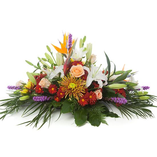 It is a small funeral composition, built on a base approximately 30x30cm and 40cm high at the highest point.