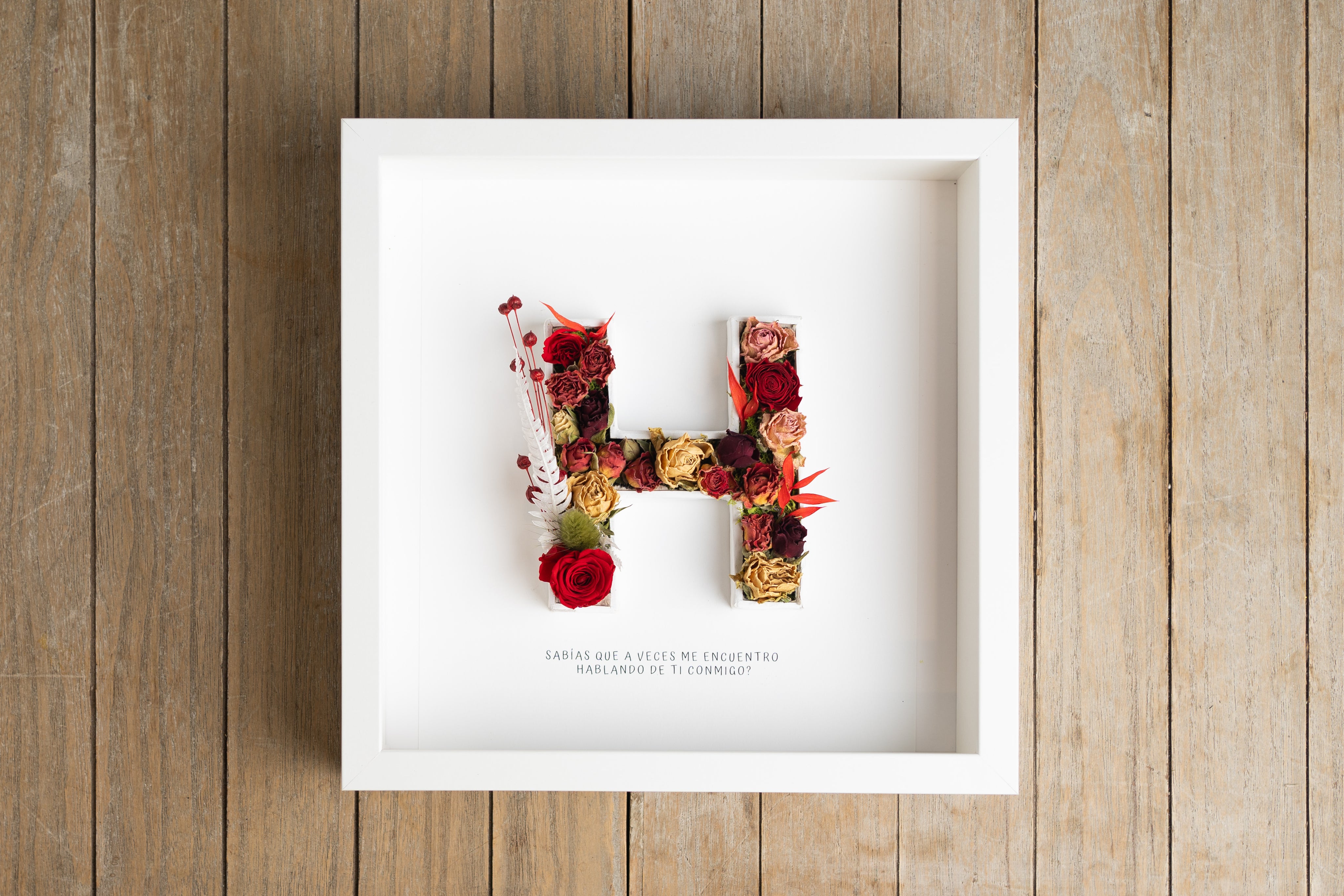 Letra H con flor seca